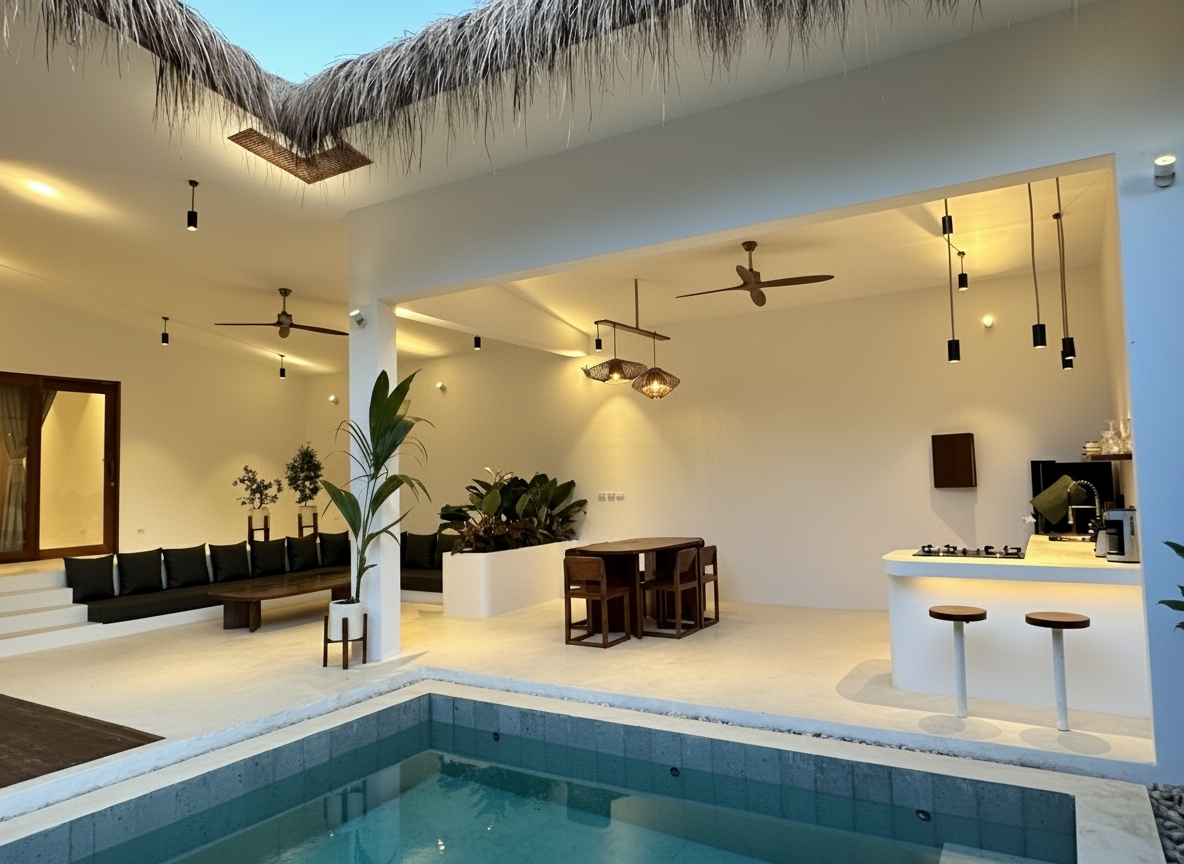 • Always turn off all lights in the main dining, living, and kitchen area in the evening before leaving the villa or retiring for the night to avoid insects from coming into the open area.